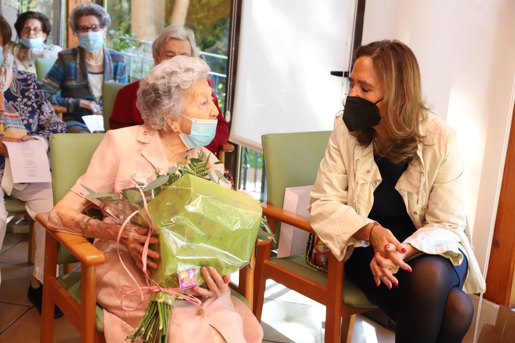 Acompañada por una de sus cuatro sobrinos, la celebración comenzó con una eucaristía concelebrada por tres sacerdotes, para después dar paso a la lectura de la oración de ‘abandono’, la favorita de la homenajeada que en primera fila, acompañada de su sobrina, a quién agarraba fuertemente de la mano, rezaba junto al resto de sus compañeros de hogar, Nuestra Señora del Rosario.