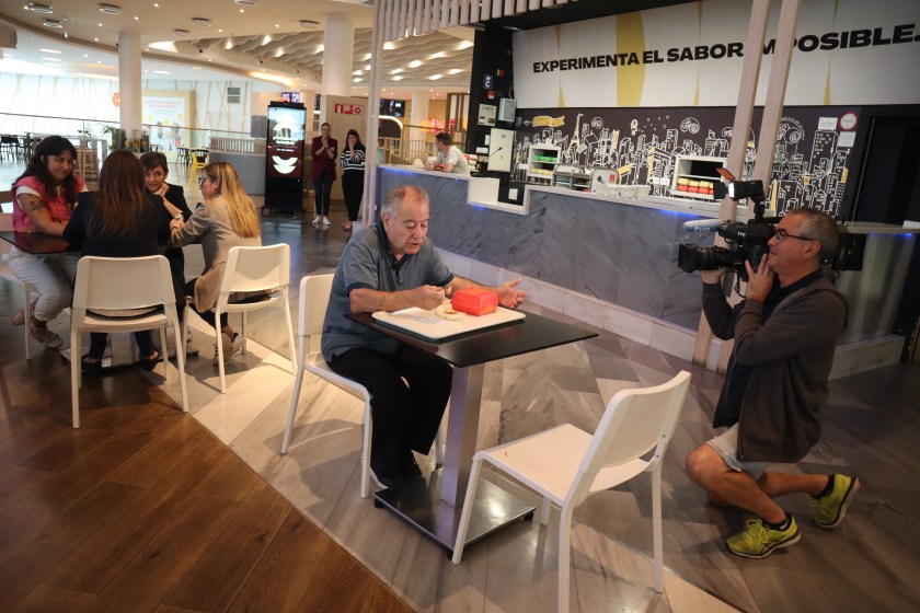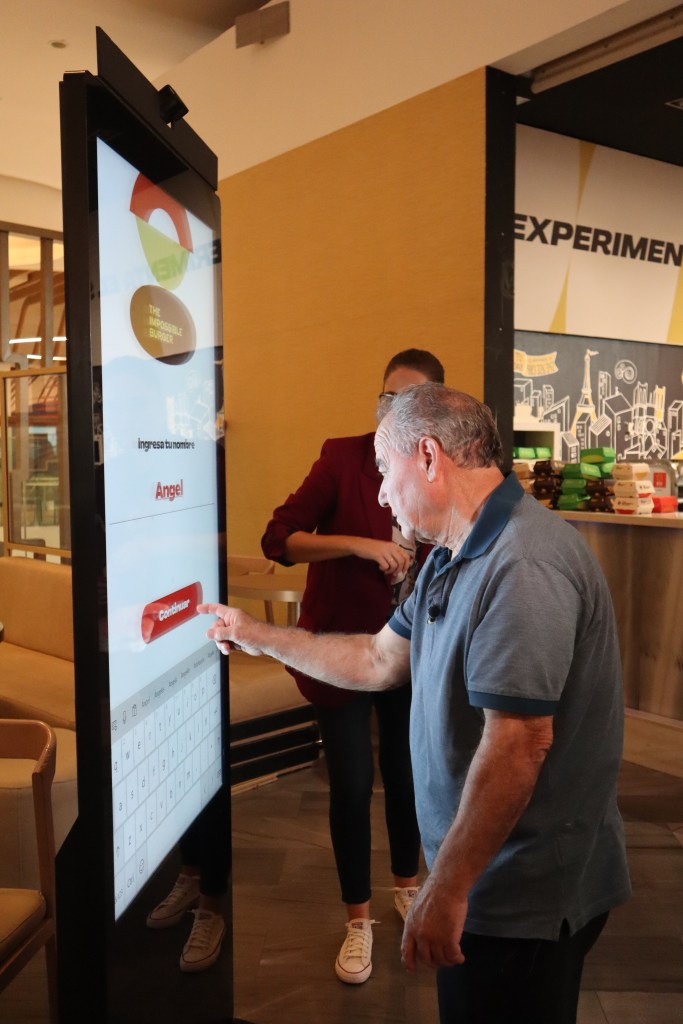 Como si de un restaurante de comida rápida se tratase, los comensales pasaban por la pantalla para realizar los pedidos y ahí comenzaban a notar las variaciones de la realidad: hamburguesas que parecen sofás, pepinos que no denominan como tales… Algo que llevaba a la confusión y que hacían que al final, personas como Ángel, uno de los probadores piloto, supiesen lo que estaba comprando. Eso ocurrió hasta al darle al ok que bailaba en la enorme tablet instalada.