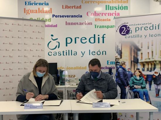 La consejera de Familia e Igualdad de Oportunidades, Isabel Blanco, y el presidente de la Plataforma Representativa Estatal de Personas con Discapacidad Física de Castilla y León (Predif), Francisco José Sardón, han firmado esta mañana en Valladolid un protocolo de colaboración para impulsar el desarrollo del Servicio Integral de Asistencia Personal y, con ello, fomentar la autonomía personal de las personas con discapacidad física, su calidad de vida y bienestar social.