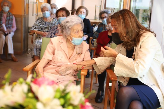 Carmen Sanz Lorenzo se convierte en la primera centenaria en celebrar su cumpleaños tras la Covid en Nuestra Señora del Rosario